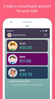 Bankaroo to wirtualny bank dla dzieci, który uczy zarządzania pieniędzmi. Pomaga najmłodszym śledzić kieszonkowe, prezenty i zarobki z obowiązków domowych. Rozwijaj umiejętności finansowe w bezpieczny i zabawny sposób.