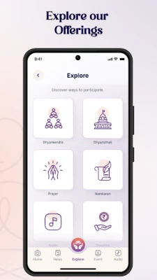 Dhyan wzbogaca Twoją ścieżkę poprzez bogactwo treści i możliwości budowania wspólnoty. Odkrywaj codzienne dyskursy (pravachans), medytacje z przewodnikiem, pieśni oddania oraz ekskluzywne podcasty od Swamijiego, Gurumaa, Shree Ambareesh ji i innych cenionych przewodników duchowych. Z łatwością śledź „Najlepsze Nagrania Dnia", odzwierciedlające preferencje społeczności. Aplikacja umożliwia również zlokalizowanie centrów medytacyjnych DhyanKendra oraz globalnych przestrzeni odosobnienia DhyanSthali, co pozwala na uczestnictwo w grupowych medytacjach i nawiązywanie głębokich połączeń. Bądź na bieżąco z aktualnościami społeczności, wydarzeniami duchowymi i poznaj szczegóły każdego ośrodka, dołączając do globalnej rodziny poszukiwaczy.