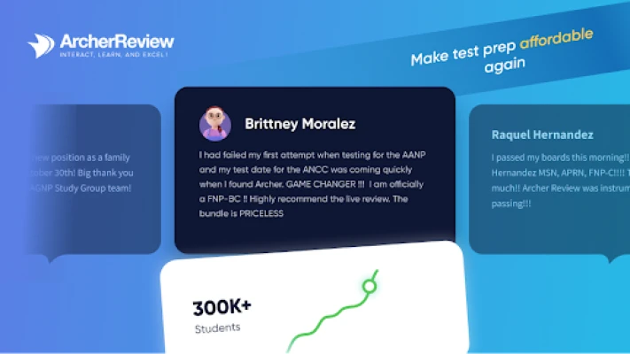 Przez lata Archer Review ugruntował swoją pozycję jako zaufany partner w przygotowaniach do kluczowych egzaminów medycznych, oferując wysoce efektywne i przystępne cenowo kursy dla pielęgniarek, studentów medycyny oraz lekarzy. Nasze innowacyjne podejście do nauczania szybko zdobyło ogromną popularność, co jest bezpośrednim odzwierciedleniem sukcesów i satysfakcji naszych studentów. Teraz, bazując na tym sprawdzonym dziedzictwie, prezentujemy Archer FNP Review – aplikację stworzoną specjalnie dla przyszłych pielęgniarek rodzinnych, zapewniającą ukierunkowane i intensywne przygotowanie do egzaminów certyfikacyjnych AANP lub ANCC. Stosujemy tę samą strategię skoncentrowaną na najważniejszych zagadnieniach, aby Twoje przygotowania były inteligentne i maksymalnie skuteczne.