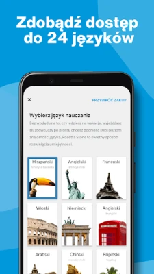 Zanurz się w świecie nowego języka dzięki intuicyjnej metodzie immersji. Rosetta Stone starannie konstruuje sekwencje słów i obrazów, abyś mógł intuicyjnie odkrywać ich znaczenie, eliminując potrzebę bezpośredniego tłumaczenia. Symulacje scenek z życia codziennego przygotują Cię na realne sytuacje – od wakacji, przez kontakty biznesowe, po swobodne rozmowy z bliskimi. Wybieraj spośród imponującej palety 24 języków, od angielskiego i hiszpańskiego, po japoński i arabski, i rozpocznij swoją podróż językową. Krótkie, 5-10 minutowe lekcje idealnie wpasują się w nawet najbardziej napięty grafik, zapewniając stały i komfortowy postęp.