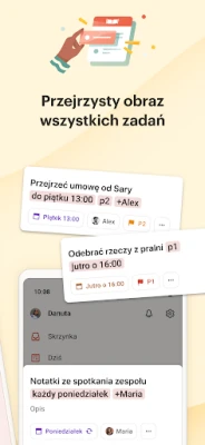 Współpraca staje się bezproblemowa, nawet w najbardziej dynamicznym zespole. Udostępniaj projekty, przydzielaj zadania i ustalaj wspólne terminy bez zbędnych szkoleń – prostota Todoist jest intuicyjna od pierwszego uruchomienia. Dzięki scentralizowanej komunikacji w czasie rzeczywistym, wszystkie komentarze i notatki są dostępne w jednym miejscu, eliminując rozproszenie wiadomości. Co więcej, Todoist doskonale współgra z Twoim ekosystemem Android, synchronizując się na telefonie, tablecie, smartwatchu Wear OS, a także w przeglądarce czy kliencie poczty e-mail. Niezależnie od urządzenia, Twoje plany są zawsze aktualne i dostępne, pozwalając Ci skupić się na tym, co najważniejsze – realizacji Twoich celów.