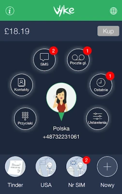 Z Vyke otrzymasz do 4 dodatkowych numerów (polskich lub angielskich). Korzystaj z darmowych połączeń i czatu, a także tanich rozmów i SMS-ów do wszystkich krajów. Prosta w obsłudze aplikacja, w pełni dostępna w języku polskim.